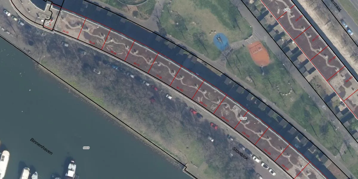 Het perceel waarop het adres ligt is RTD05-Q-6236. De afkorting 'RTD05' staat voor kadastrale gemeente Rotterdam. De oppervlakte van het perceel is 4846 m². Dat is groter dan gemiddeld in Rotterdam, waar de gemiddelde perceeloppervlakte op 1401,79 m² ligt. De grootste perceeloppervlakte in de kadastrale gemeente is 36,8 ha. De kleinste oppervlakte bedraagt 0 m². Op het perceel zijn 113 adressen aanwezig. In de Basisregistratie Kadaster (BRK) werden de grenzen van het perceel geregistreerd op 22-07-2009.
