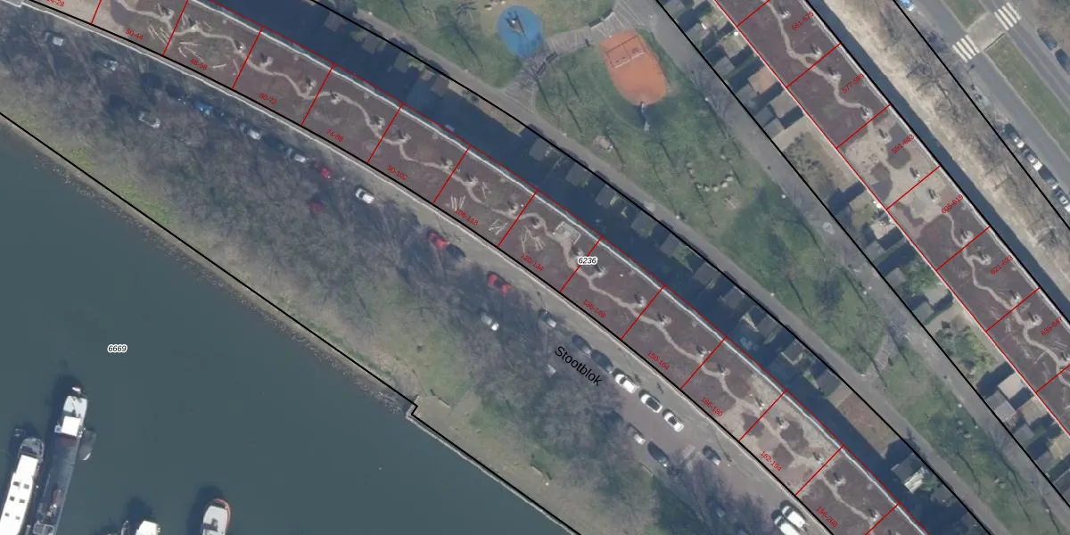 Het perceel waarop het adres ligt is RTD05-Q-6236. De afkorting 'RTD05' staat voor kadastrale gemeente Rotterdam. De oppervlakte van het perceel is 4846 m². Dat is groter dan gemiddeld in Rotterdam, waar de gemiddelde perceeloppervlakte op 1401,79 m² ligt. De grootste perceeloppervlakte in de kadastrale gemeente is 36,8 ha. De kleinste oppervlakte bedraagt 0 m². Op het perceel liggen in totaal 113 adressen. In de Basisregistratie Kadaster (BRK) werden de grenzen van het perceel geregistreerd op 22-07-2009.