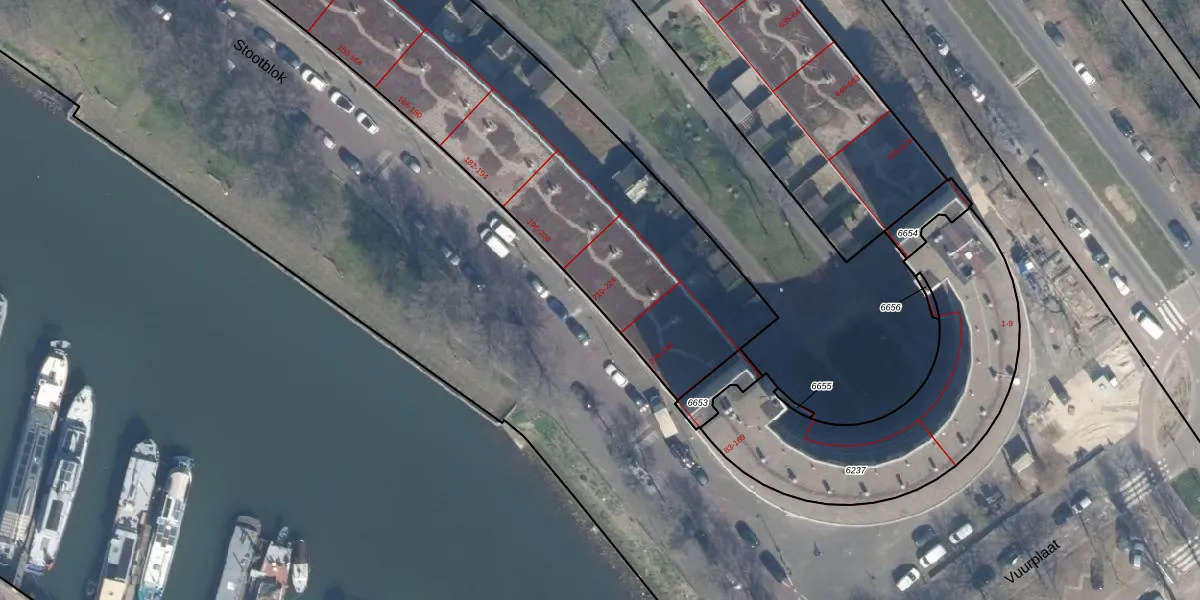 Stootblok 216 is gelegen op kadastraal perceel RTD05Q6236. Deze kadastrale aanduiding is uniek en wordt gebruikt door het Kadaster om eigendomsrechten en andere zakelijke rechten vast te leggen. Het perceel maakt onderdeel uit van de kadastrale gemeente Rotterdam.