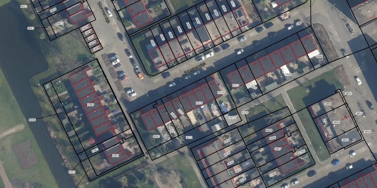 Het perceel waarop Stormerdijk 113 staat heeft een oppervlakte van 377 m². Dit is een groot perceel. De perceeloppervlakte wordt geregistreerd door het Kadaster. Gedetailleerde informatie over de maten van dit perceel kunt u vinden in het rapport Kadastrale kaart met maatvoering van Stormerdijk 113.