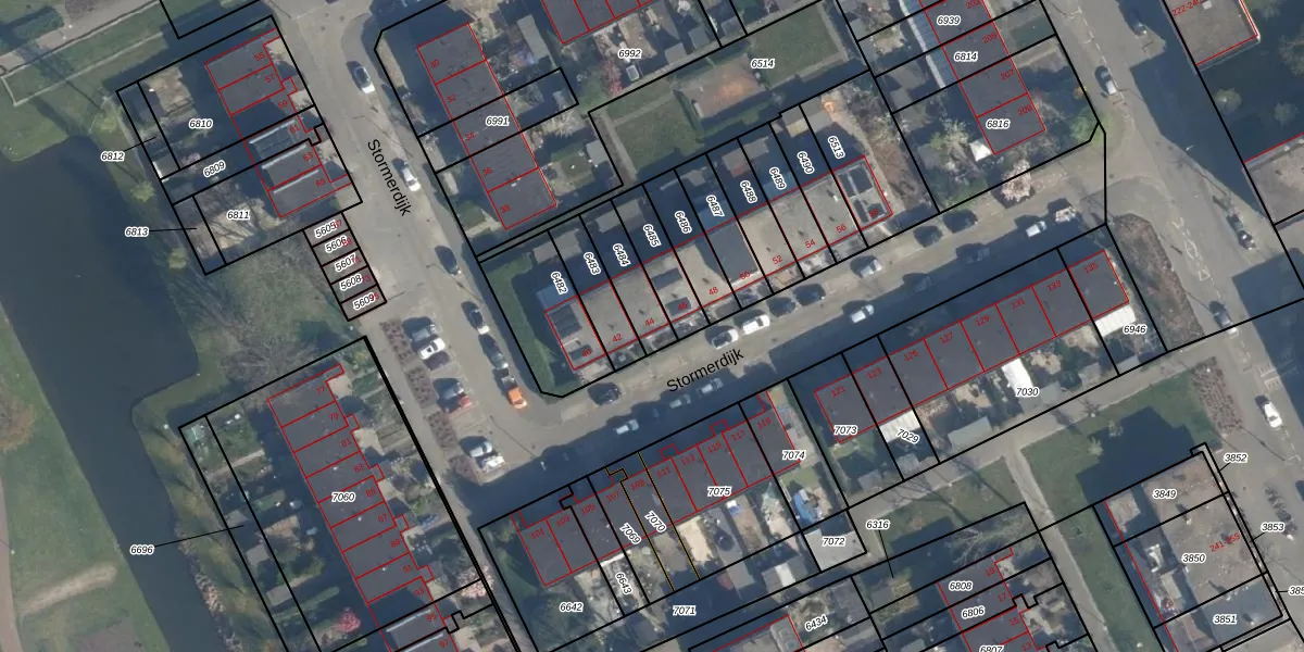 Stormerdijk 44 is gelegen op kadastraal perceel ISM01B6484. Deze kadastrale aanduiding is uniek en wordt gebruikt door het Kadaster om eigendomsrechten en andere zakelijke rechten vast te leggen. Het perceel maakt onderdeel uit van de kadastrale gemeente IJsselmonde.