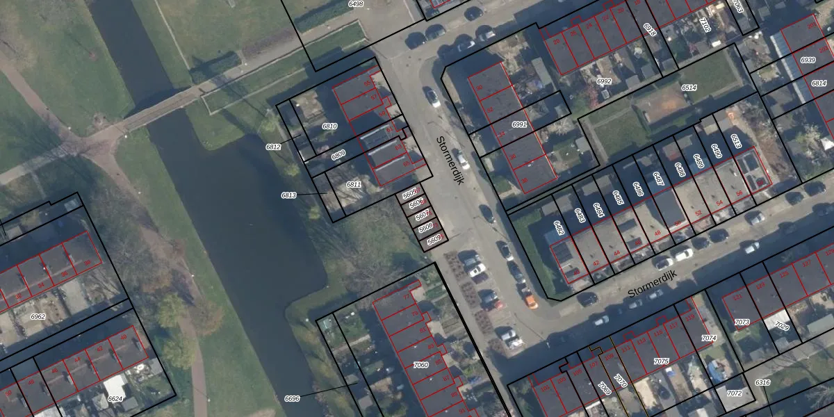 Het perceel waarop Stormerdijk 69 staat heeft een oppervlakte van 20 m². Dit is een klein perceel. De perceeloppervlakte wordt geregistreerd door het Kadaster. Gedetailleerde informatie over de maten van dit perceel kunt u vinden in het rapport Kadastrale kaart met maatvoering van Stormerdijk 69.
