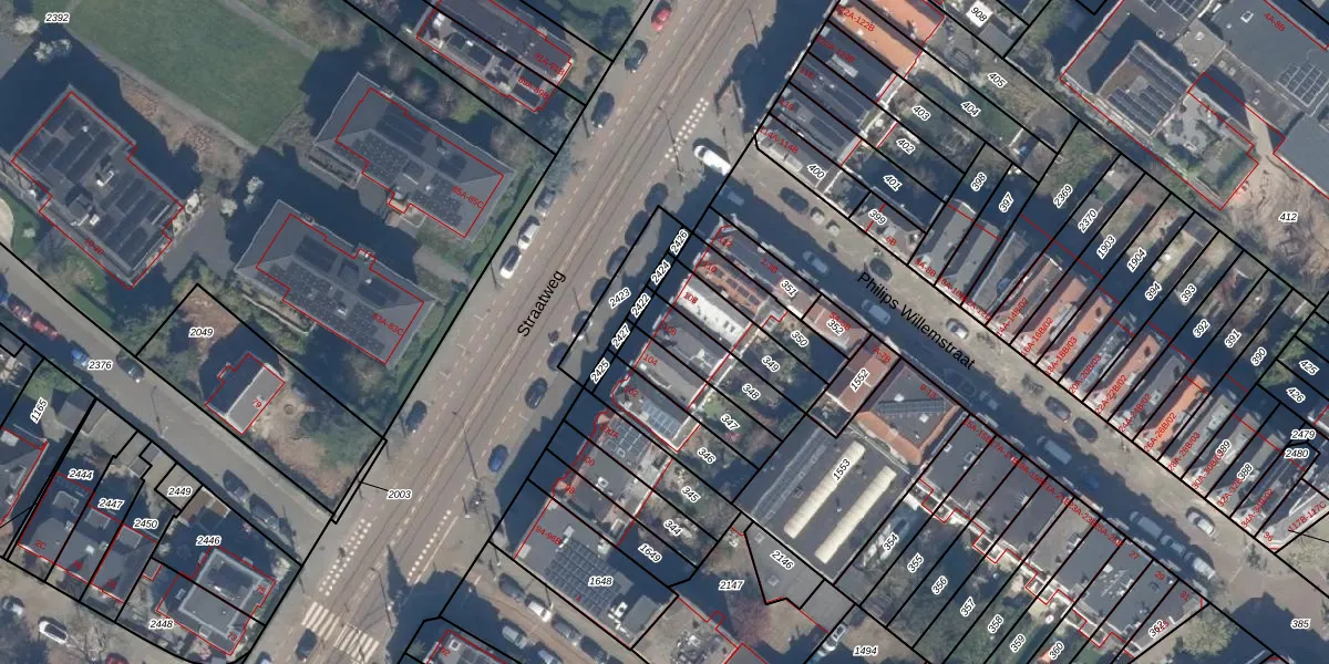 Straatweg 106 is gelegen op kadastraal perceel HLG03G348. Deze kadastrale aanduiding is uniek en wordt gebruikt door het Kadaster om eigendomsrechten en andere zakelijke rechten vast te leggen. Het perceel maakt onderdeel uit van de kadastrale gemeente Hillegersberg.
