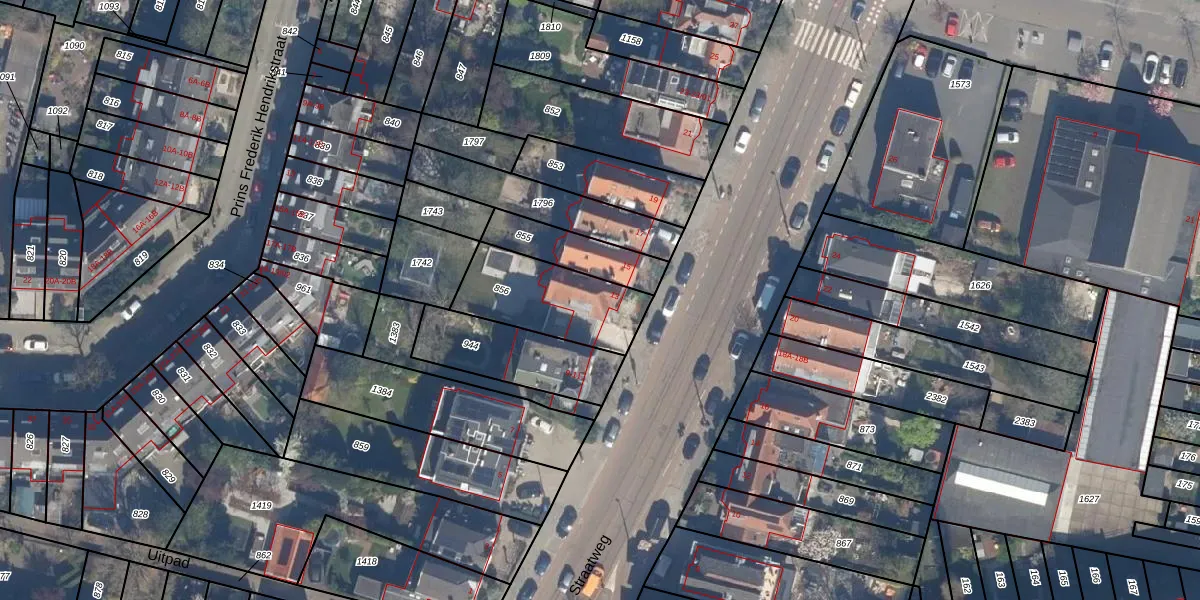 Straatweg 13 is gelegen op kadastraal perceel HLG03H856. Deze kadastrale aanduiding is uniek en wordt gebruikt door het Kadaster om eigendomsrechten en andere zakelijke rechten vast te leggen. Het perceel maakt onderdeel uit van de kadastrale gemeente Hillegersberg.