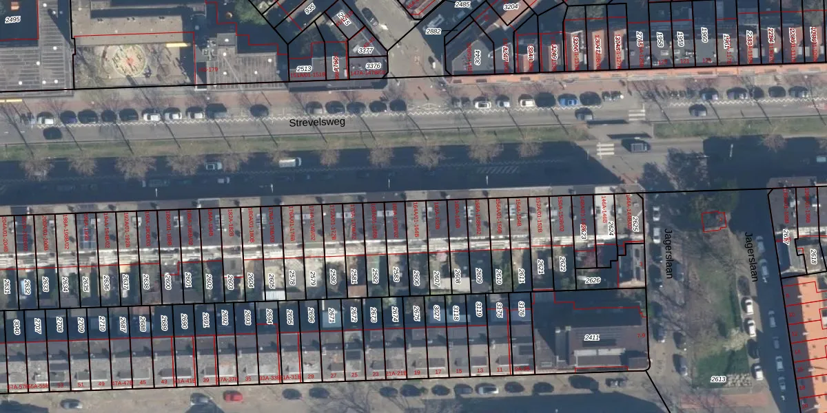 Strevelsweg 164-A-01 is gelegen op kadastraal perceel CLS00F2606. Deze kadastrale aanduiding is uniek en wordt gebruikt door het Kadaster om eigendomsrechten en andere zakelijke rechten vast te leggen. Het perceel maakt onderdeel uit van de kadastrale gemeente Charlois.