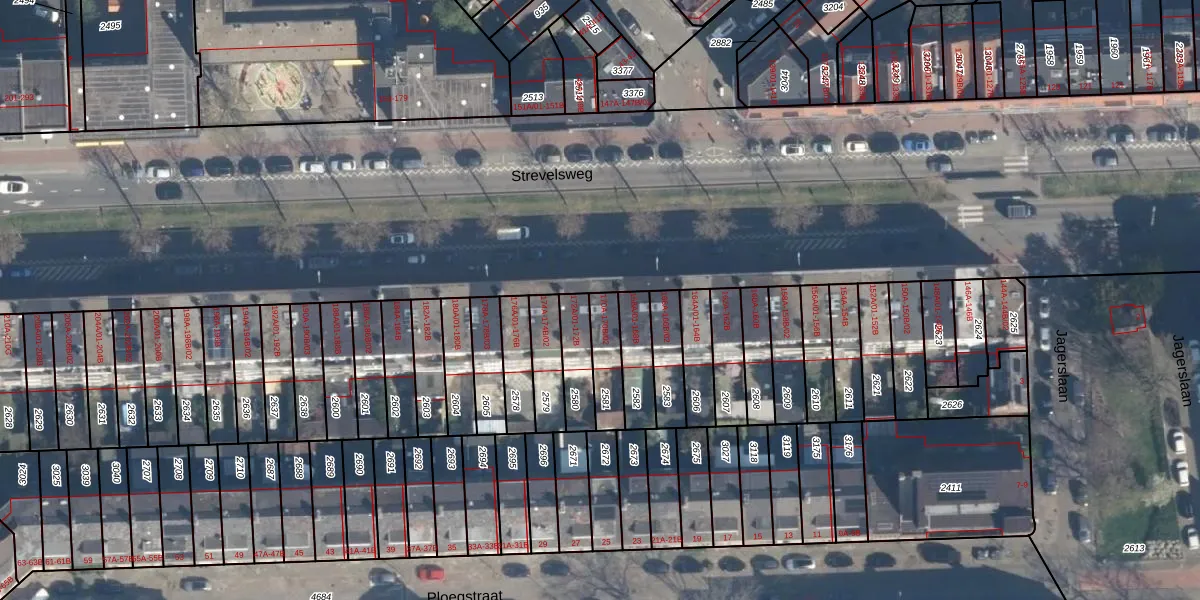 Strevelsweg 170-A is gelegen op kadastraal perceel CLS00F2581. Deze kadastrale aanduiding is uniek en wordt gebruikt door het Kadaster om eigendomsrechten en andere zakelijke rechten vast te leggen. Het perceel maakt onderdeel uit van de kadastrale gemeente Charlois.
