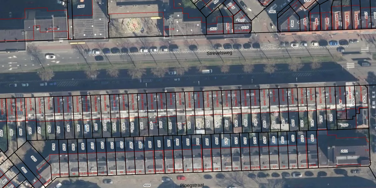 Strevelsweg 180-A-01 is gelegen op kadastraal perceel CLS00F2604. Deze kadastrale aanduiding is uniek en wordt gebruikt door het Kadaster om eigendomsrechten en andere zakelijke rechten vast te leggen. Het perceel maakt onderdeel uit van de kadastrale gemeente Charlois.