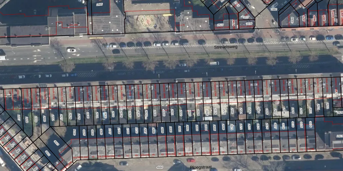 Strevelsweg 186-A is gelegen op kadastraal perceel CLS00F2601. Deze kadastrale aanduiding is uniek en wordt gebruikt door het Kadaster om eigendomsrechten en andere zakelijke rechten vast te leggen. Het perceel maakt onderdeel uit van de kadastrale gemeente Charlois.