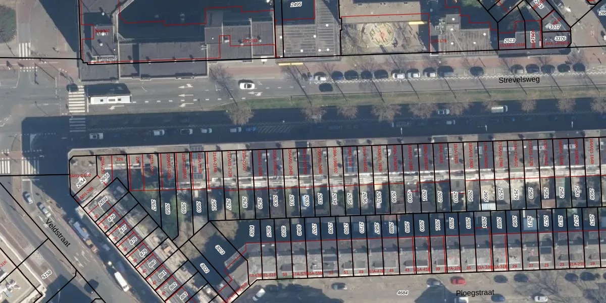 Strevelsweg 202-A is gelegen op kadastraal perceel CLS00F2632. Deze kadastrale aanduiding is uniek en wordt gebruikt door het Kadaster om eigendomsrechten en andere zakelijke rechten vast te leggen. Het perceel maakt onderdeel uit van de kadastrale gemeente Charlois.