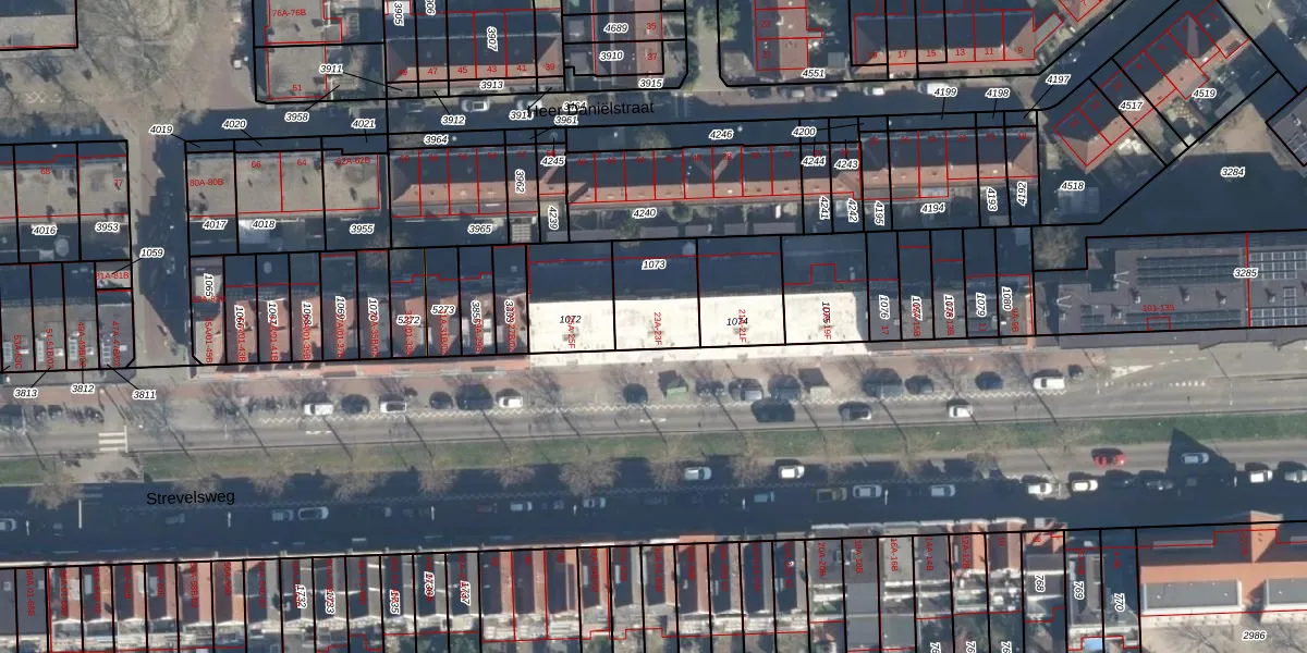 Strevelsweg 23-F is gelegen op kadastraal perceel CLS00F1073. Deze kadastrale aanduiding is uniek en wordt gebruikt door het Kadaster om eigendomsrechten en andere zakelijke rechten vast te leggen. Het perceel maakt onderdeel uit van de kadastrale gemeente Charlois.