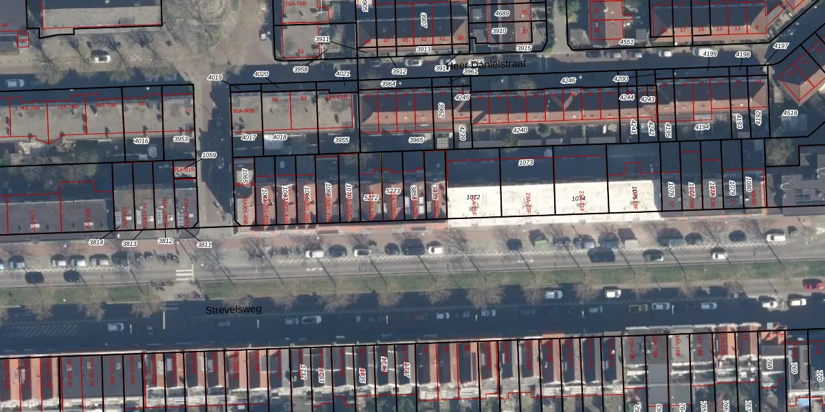 Het perceel waarop Strevelsweg 29-B staat heeft een oppervlakte van 88 m². Dit is een klein perceel. De perceeloppervlakte wordt geregistreerd door het Kadaster. Gedetailleerde informatie over de maten van dit perceel kunt u vinden in het rapport Kadastrale kaart met maatvoering van Strevelsweg 29-B.