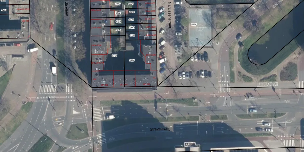 Strevelsweg 335 is gelegen op kadastraal perceel CLS00G3376. Deze kadastrale aanduiding is uniek en wordt gebruikt door het Kadaster om eigendomsrechten en andere zakelijke rechten vast te leggen. Het perceel maakt onderdeel uit van de kadastrale gemeente Charlois.