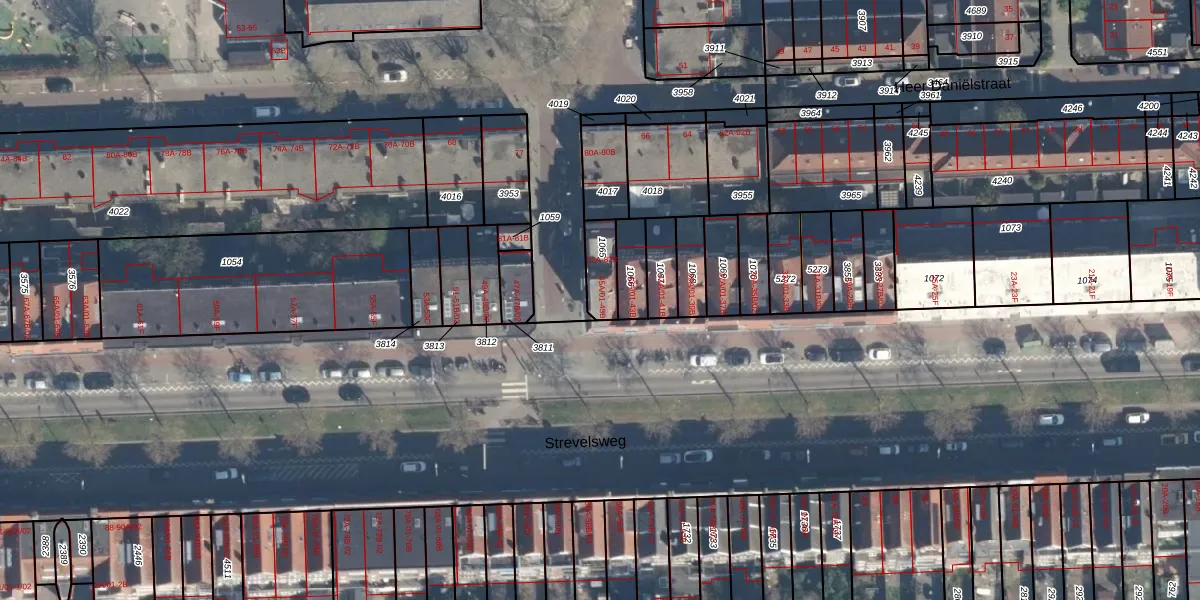 Strevelsweg 45-B is gelegen op kadastraal perceel CLS00F1065. Deze kadastrale aanduiding is uniek en wordt gebruikt door het Kadaster om eigendomsrechten en andere zakelijke rechten vast te leggen. Het perceel maakt onderdeel uit van de kadastrale gemeente Charlois.