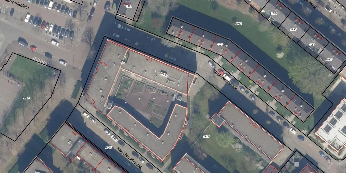 Het perceel waarop Strobloemstraat 38 staat heeft een oppervlakte van 6595 m². Dit is een zeer groot perceel. De perceeloppervlakte wordt geregistreerd door het Kadaster. Gedetailleerde informatie over de maten van dit perceel kunt u vinden in het rapport Kadastrale kaart met maatvoering van Strobloemstraat 38.
