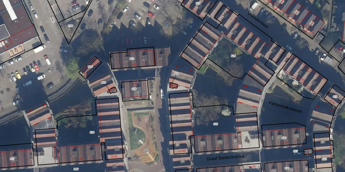 Het adres is gelegen op perceel 609 in de sectie AD en de kadastrale gemeente Rotterdam. De kadastrale aanduiding is aldus RTD08-AD-609. Het perceel is 11 m² groot. Dat is kleiner dan de gemiddelde perceeloppervlakte in Rotterdam, dat op 689,2 m² ligt. Het kleinste perceel in de kadastrale gemeente is 0 m² groot. De grootste perceeloppervlakte is 4,0 ha. Op het perceel liggen in totaal 5 adressen. In de Basisregistratie Kadaster (BRK) werden de grenzen van het perceel geregistreerd op 10-07-2003.
