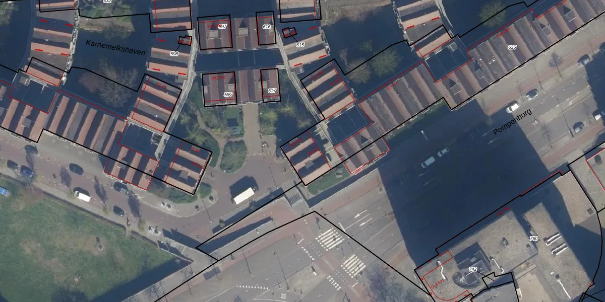 Het adres is gelegen op perceel 635 in de sectie AD en de kadastrale gemeente Rotterdam. De kadastrale aanduiding is aldus RTD08-AD-635. De oppervlakte van het perceel is 2875 m². Dat is groter dan gemiddeld in Rotterdam, waar de gemiddelde perceeloppervlakte op 689,2 m² ligt. De grootste perceeloppervlakte in de kadastrale gemeente is 4,0 ha. De kleinste oppervlakte bedraagt 0 m². Er zijn 30 adressen aanwezig op het perceel. In de Basisregistratie Kadaster (BRK) werden de grenzen van het perceel geregistreerd op 02-01-2003.