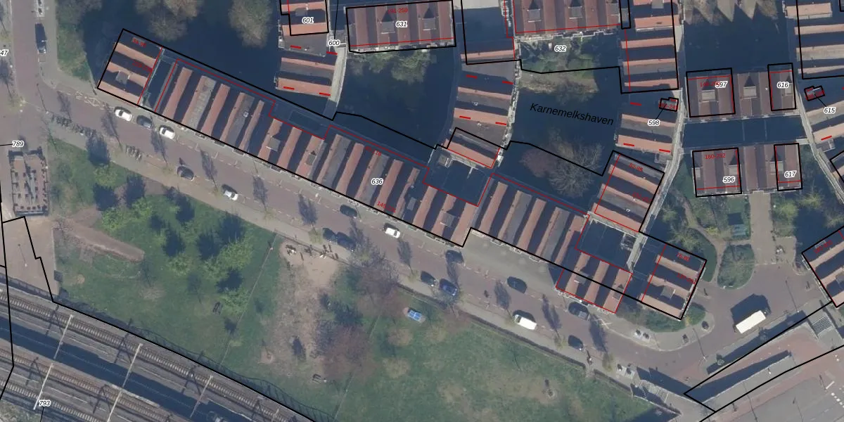 Het adres is gelegen op perceel 636 in de sectie AD en de kadastrale gemeente Rotterdam. De kadastrale aanduiding is aldus RTD08-AD-636. De oppervlakte van het perceel is 2868 m². Dat is groter dan gemiddeld in Rotterdam, waar de gemiddelde perceeloppervlakte op 689,2 m² ligt. Het grootste perceel in de kadastrale gemeente is 4,0 ha. Het kleinste perceel heeft een oppervlakte van 0 m². Op het perceel zijn 88 adressen aanwezig. De laatste wijziging in het de Basisregistratie Kadaster (BRK) was op 24-12-2002.