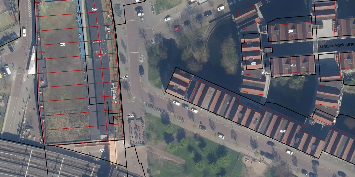 Het adres is gelegen op perceel 636 in de sectie AD en de kadastrale gemeente Rotterdam. De kadastrale aanduiding is aldus RTD08-AD-636. De oppervlakte van het perceel is 2868 m². Dat is groter dan gemiddeld in Rotterdam, waar de gemiddelde perceeloppervlakte op 689,2 m² ligt. Het grootste perceel in de kadastrale gemeente is 4,0 ha. Het kleinste perceel heeft een oppervlakte van 0 m². Er zijn 88 adressen aanwezig op het perceel. De laatste wijziging in het de Basisregistratie Kadaster (BRK) was op 24-12-2002.