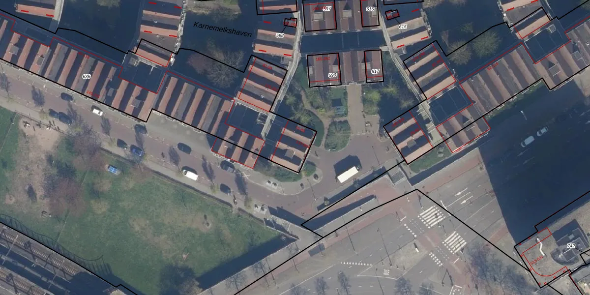 Het perceel waarop het adres ligt is RTD08-AD-636. De afkorting 'RTD08' staat voor kadastrale gemeente Rotterdam. Het perceel is met 2868 m² relatief groot. Het gemiddelde ligt in de kadastrale gemeente Rotterdam op 689,2 m². Het kleinste perceel in de kadastrale gemeente is 0 m² groot. De grootste perceeloppervlakte is 4,0 ha. Er zijn 88 adressen aanwezig op het perceel. In de Basisregistratie Kadaster (BRK) werden de grenzen van het perceel geregistreerd op 24-12-2002.