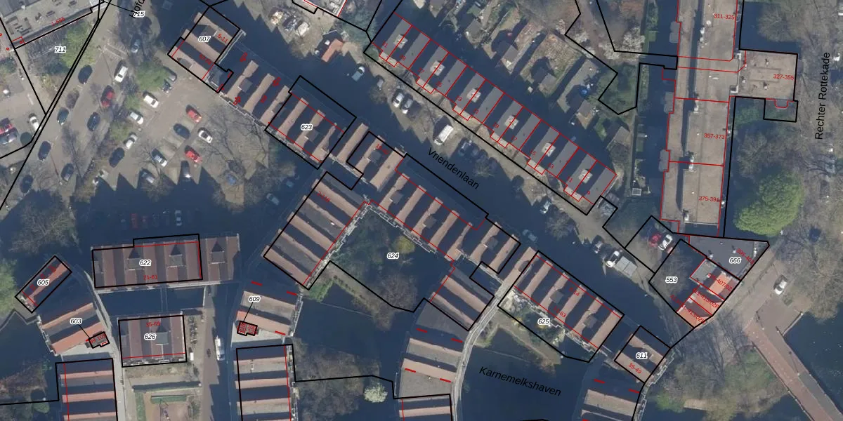 Het adres is gelegen op perceel 624 in de sectie AD en de kadastrale gemeente Rotterdam. De kadastrale aanduiding is aldus RTD08-AD-624. De oppervlakte van het perceel is 1437 m². Dat is groter dan gemiddeld in Rotterdam, waar de gemiddelde perceeloppervlakte op 689,2 m² ligt. Het kleinste perceel in de kadastrale gemeente is 0 m² groot. De grootste perceeloppervlakte is 4,0 ha. Op het perceel zijn 43 adressen aanwezig. De huidige grenzen van het perceel zijn digitaal in de Basisregistratie Kadaster (BRK) geregistreerd op 10-07-2003.