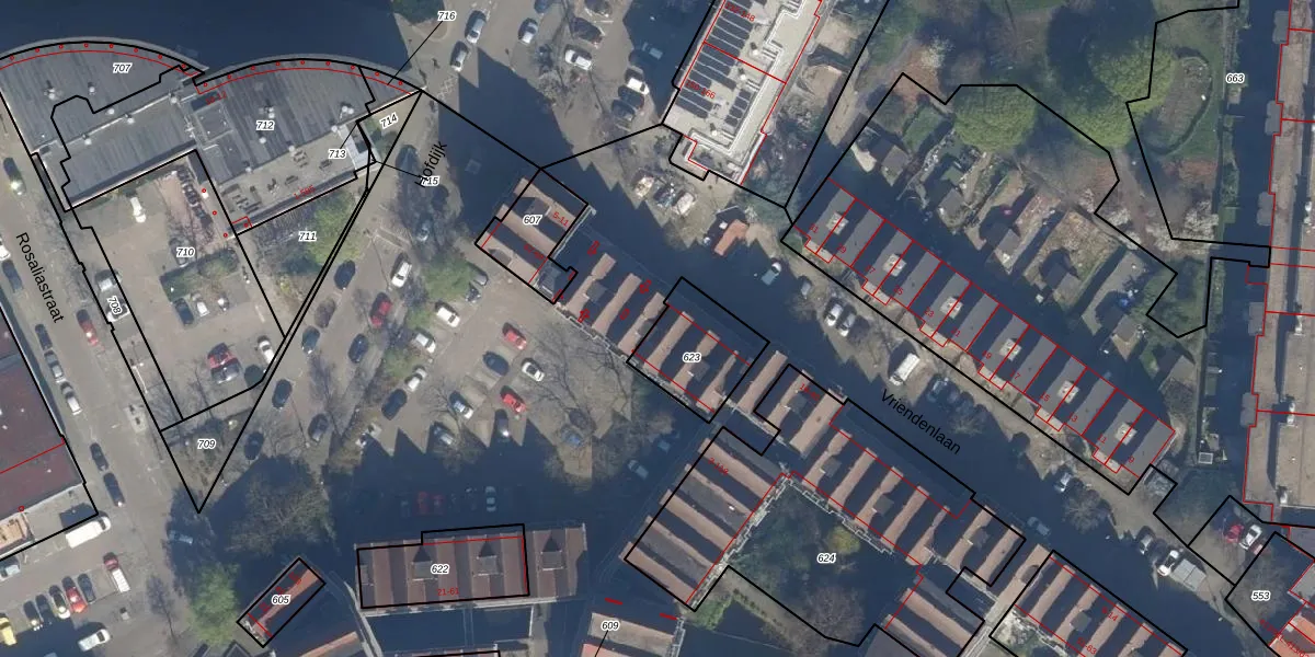 Het adres is gelegen op perceel 623 in de sectie AD en de kadastrale gemeente Rotterdam. De kadastrale aanduiding is aldus RTD08-AD-623. Het perceel is 248 m² groot. Dat is kleiner dan de gemiddelde perceeloppervlakte in Rotterdam, dat op 689,2 m² ligt. Het kleinste perceel in de kadastrale gemeente is 0 m² groot. De grootste perceeloppervlakte is 4,0 ha. Er zijn 7 adressen aanwezig op het perceel. De huidige grenzen van het perceel zijn digitaal in de Basisregistratie Kadaster (BRK) geregistreerd op 10-07-2003.