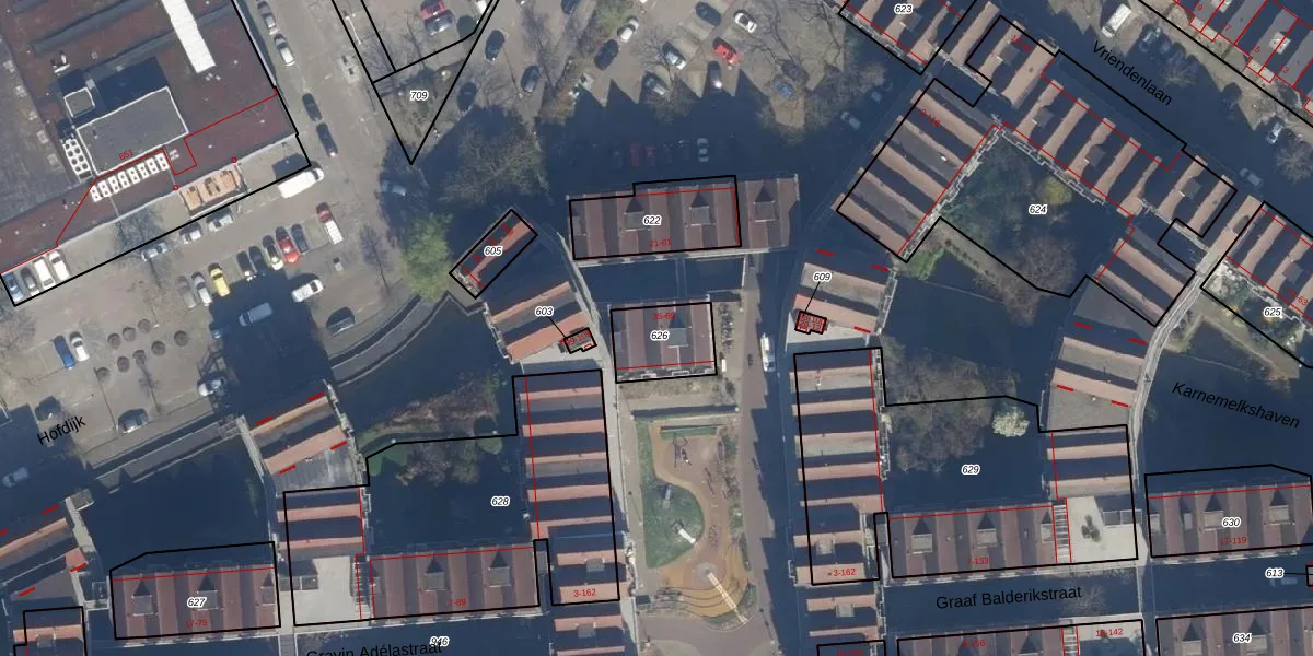 Het adres is gelegen op perceel 626 in de sectie AD en de kadastrale gemeente Rotterdam. De kadastrale aanduiding is aldus RTD08-AD-626. Het perceel is 165 m² groot. Dat is kleiner dan de gemiddelde perceeloppervlakte in Rotterdam, dat op 689,2 m² ligt. Het kleinste perceel in de kadastrale gemeente is 0 m² groot. De grootste perceeloppervlakte is 4,0 ha. Op het perceel zijn 7 adressen aanwezig. In de Basisregistratie Kadaster (BRK) werden de grenzen van het perceel geregistreerd op 10-07-2003.