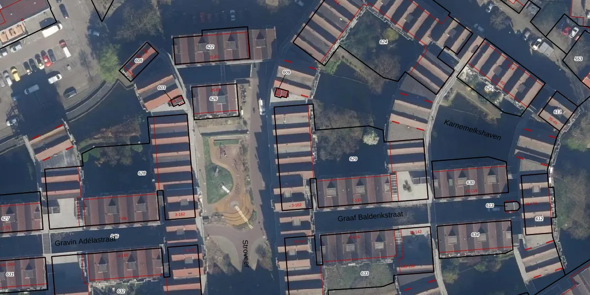 Het adres is gelegen op perceel 629 in de sectie AD en de kadastrale gemeente Rotterdam. De kadastrale aanduiding is aldus RTD08-AD-629. De oppervlakte van het perceel is 1317 m². Dat is groter dan gemiddeld in Rotterdam, waar de gemiddelde perceeloppervlakte op 689,2 m² ligt. Het kleinste perceel in de kadastrale gemeente is 0 m² groot. De grootste perceeloppervlakte is 4,0 ha. Op het perceel liggen in totaal 32 adressen. In de Basisregistratie Kadaster (BRK) werden de grenzen van het perceel geregistreerd op 24-12-2002.