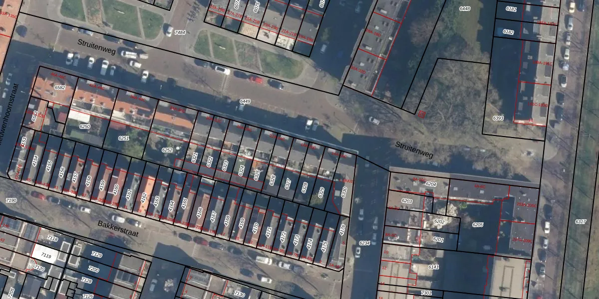 Struitenweg 20-C is gelegen op kadastraal perceel CLS00B6327. Deze kadastrale aanduiding is uniek en wordt gebruikt door het Kadaster om eigendomsrechten en andere zakelijke rechten vast te leggen. Het perceel maakt onderdeel uit van de kadastrale gemeente Charlois.