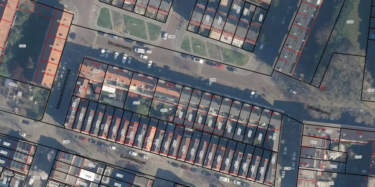 Struitenweg 32-C is gelegen op kadastraal perceel CLS00B6321. Deze kadastrale aanduiding is uniek en wordt gebruikt door het Kadaster om eigendomsrechten en andere zakelijke rechten vast te leggen. Het perceel maakt onderdeel uit van de kadastrale gemeente Charlois.