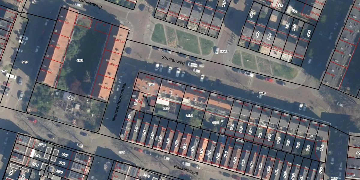 Struitenweg 42-C is gelegen op kadastraal perceel CLS00B6250. Deze kadastrale aanduiding is uniek en wordt gebruikt door het Kadaster om eigendomsrechten en andere zakelijke rechten vast te leggen. Het perceel maakt onderdeel uit van de kadastrale gemeente Charlois.