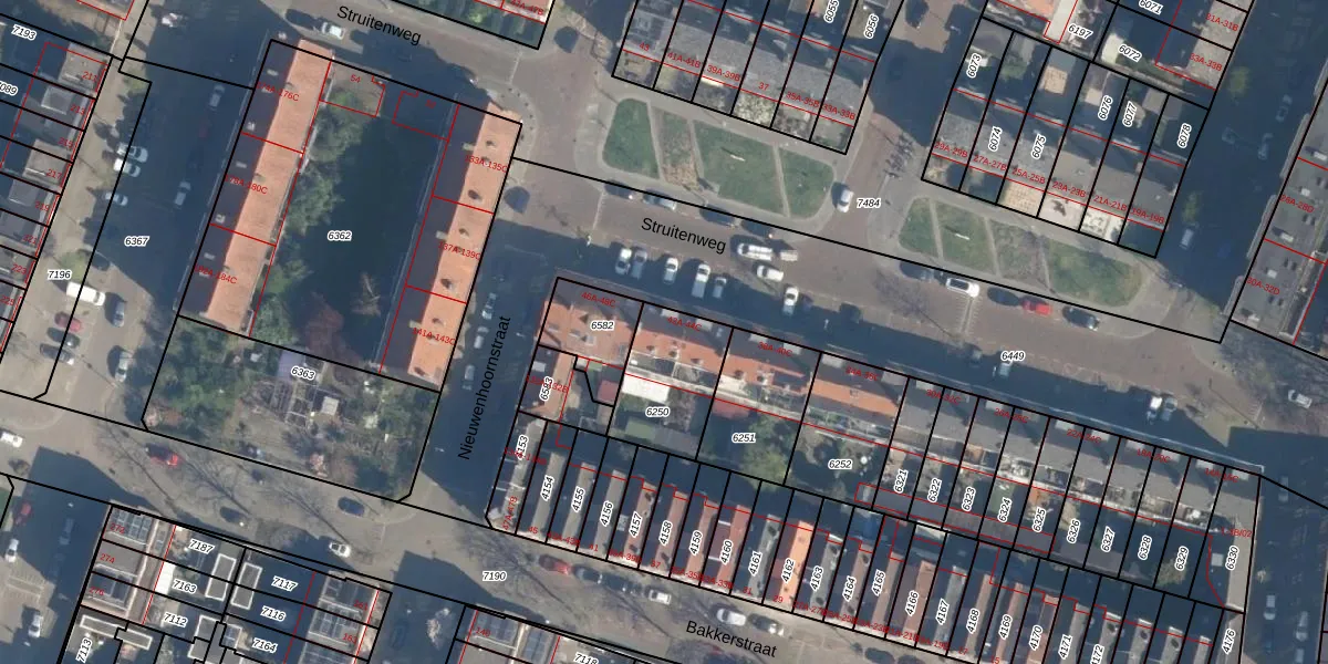 Struitenweg 44-A is gelegen op kadastraal perceel CLS00B6250. Deze kadastrale aanduiding is uniek en wordt gebruikt door het Kadaster om eigendomsrechten en andere zakelijke rechten vast te leggen. Het perceel maakt onderdeel uit van de kadastrale gemeente Charlois.