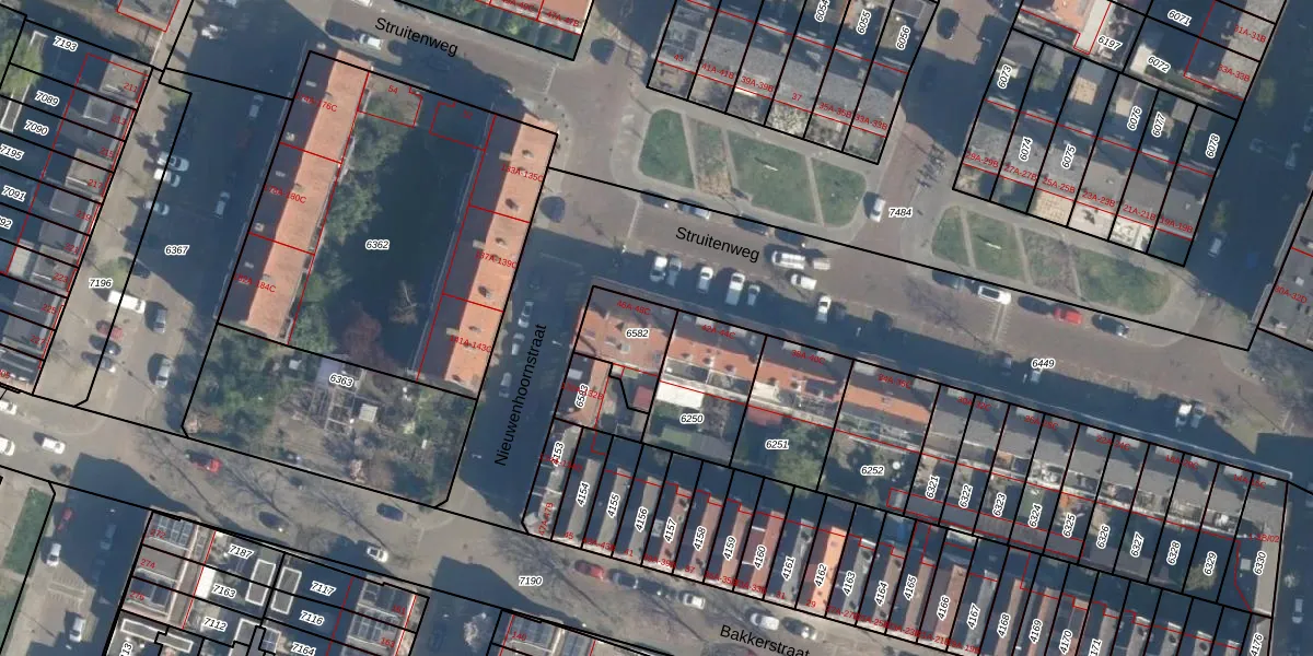 Struitenweg 46-C is gelegen op kadastraal perceel CLS00B6582. Deze kadastrale aanduiding is uniek en wordt gebruikt door het Kadaster om eigendomsrechten en andere zakelijke rechten vast te leggen. Het perceel maakt onderdeel uit van de kadastrale gemeente Charlois.