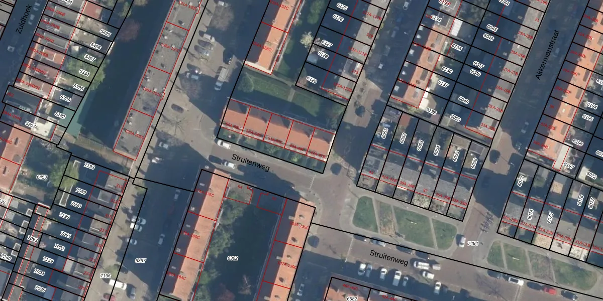 Struitenweg 49-A is gelegen op kadastraal perceel CLS00B6360. Deze kadastrale aanduiding is uniek en wordt gebruikt door het Kadaster om eigendomsrechten en andere zakelijke rechten vast te leggen. Het perceel maakt onderdeel uit van de kadastrale gemeente Charlois.