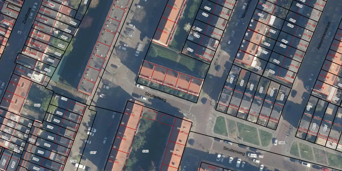 Struitenweg 51-B is gelegen op kadastraal perceel CLS00B6360. Deze kadastrale aanduiding is uniek en wordt gebruikt door het Kadaster om eigendomsrechten en andere zakelijke rechten vast te leggen. Het perceel maakt onderdeel uit van de kadastrale gemeente Charlois.