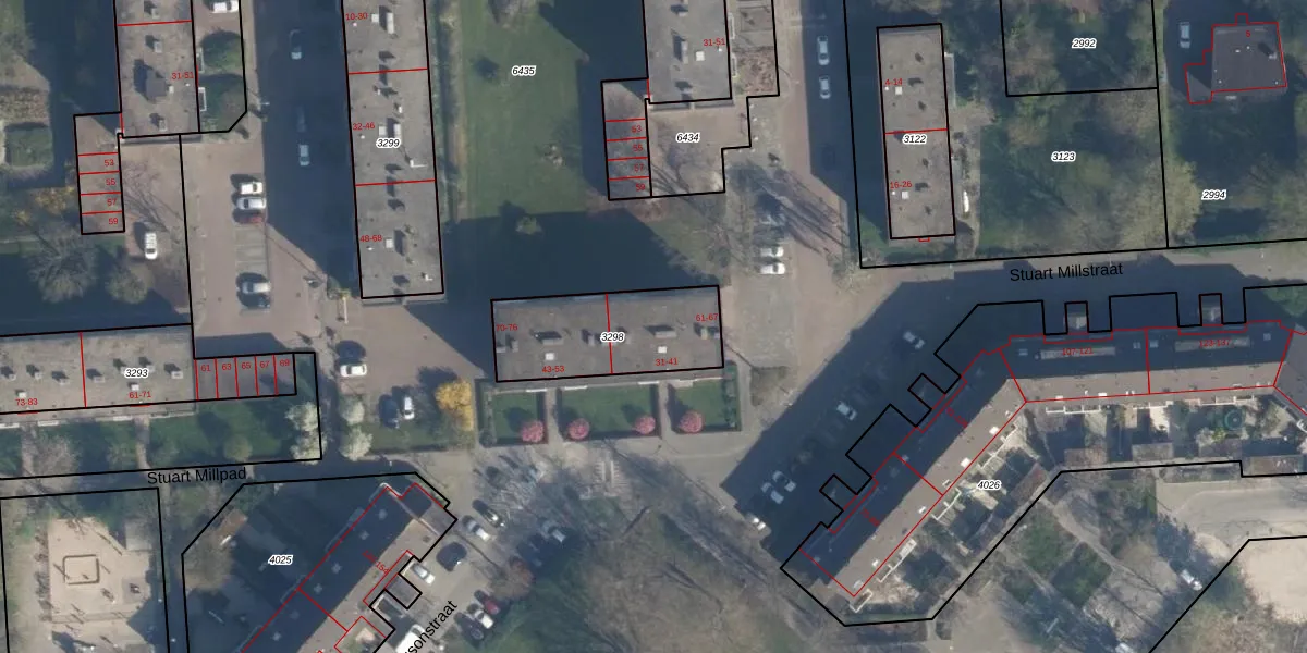 Stuart Millpad 33 is gelegen op kadastraal perceel ISM01C3298. Deze kadastrale aanduiding is uniek en wordt gebruikt door het Kadaster om eigendomsrechten en andere zakelijke rechten vast te leggen. Het perceel maakt onderdeel uit van de kadastrale gemeente IJsselmonde.