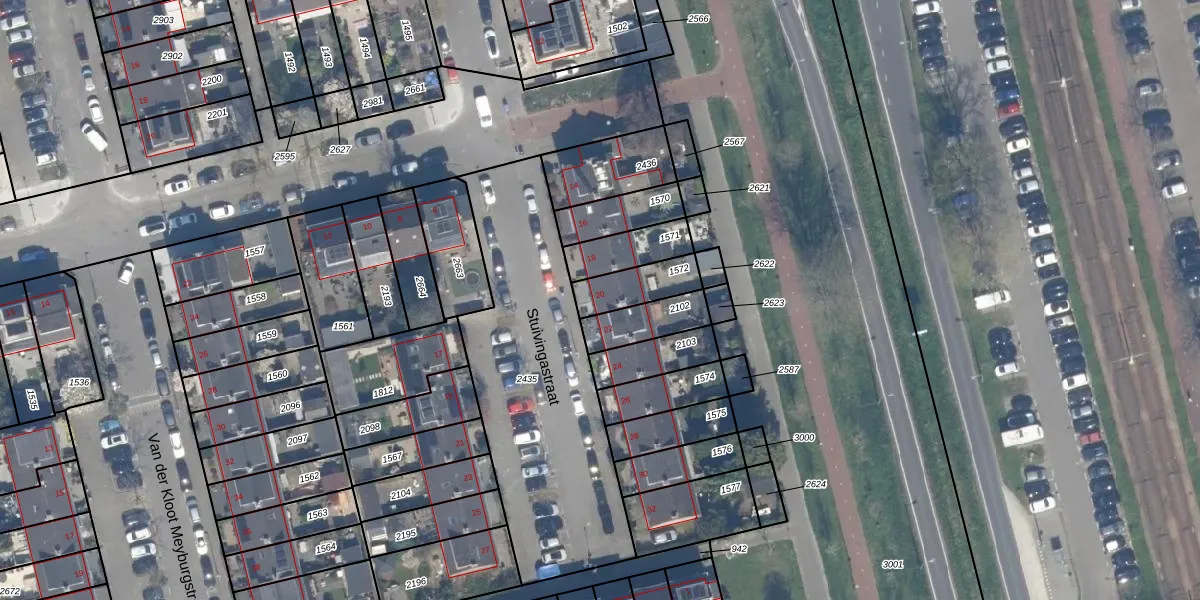 Stuivingastraat 20 is gelegen op kadastraal perceel KLG00K1572. Deze kadastrale aanduiding is uniek en wordt gebruikt door het Kadaster om eigendomsrechten en andere zakelijke rechten vast te leggen. Het perceel maakt onderdeel uit van de kadastrale gemeente Kralingen.