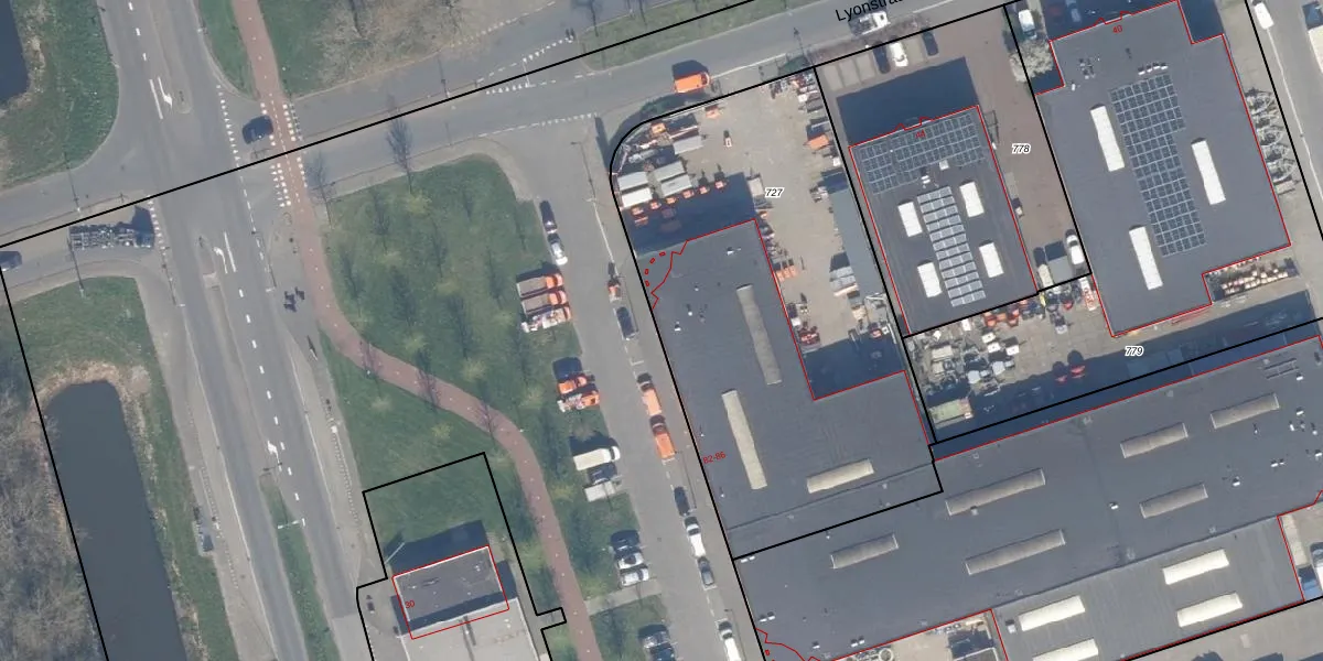 Het adres is gelegen op perceel 727 in de sectie E en de kadastrale gemeente Overschie. De kadastrale aanduiding is aldus OVS00-E-727. Het perceel is kleiner dan gemiddeld in Overschie. Het perceel is 2305 m² groot, terwijl het gemiddelde ligt op 2524,08 m². Het kleinste perceel in de kadastrale gemeente is 0 m² groot. De grootste perceeloppervlakte is 80,2 ha. Dit is het enige adres dat aanwezig is op het perceel. In de Basisregistratie Kadaster (BRK) werden de grenzen van het perceel geregistreerd op 29-11-2013.