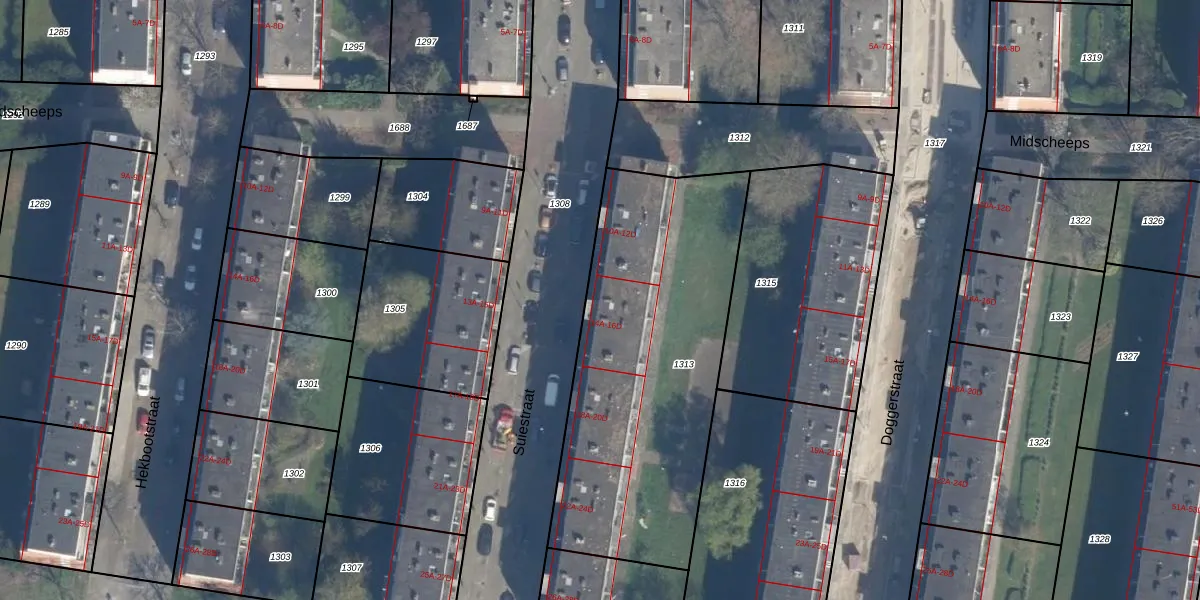 Suiestraat 14-B is gelegen op kadastraal perceel RTD10AA1313. Deze kadastrale aanduiding is uniek en wordt gebruikt door het Kadaster om eigendomsrechten en andere zakelijke rechten vast te leggen. Het perceel maakt onderdeel uit van de kadastrale gemeente Rotterdam.