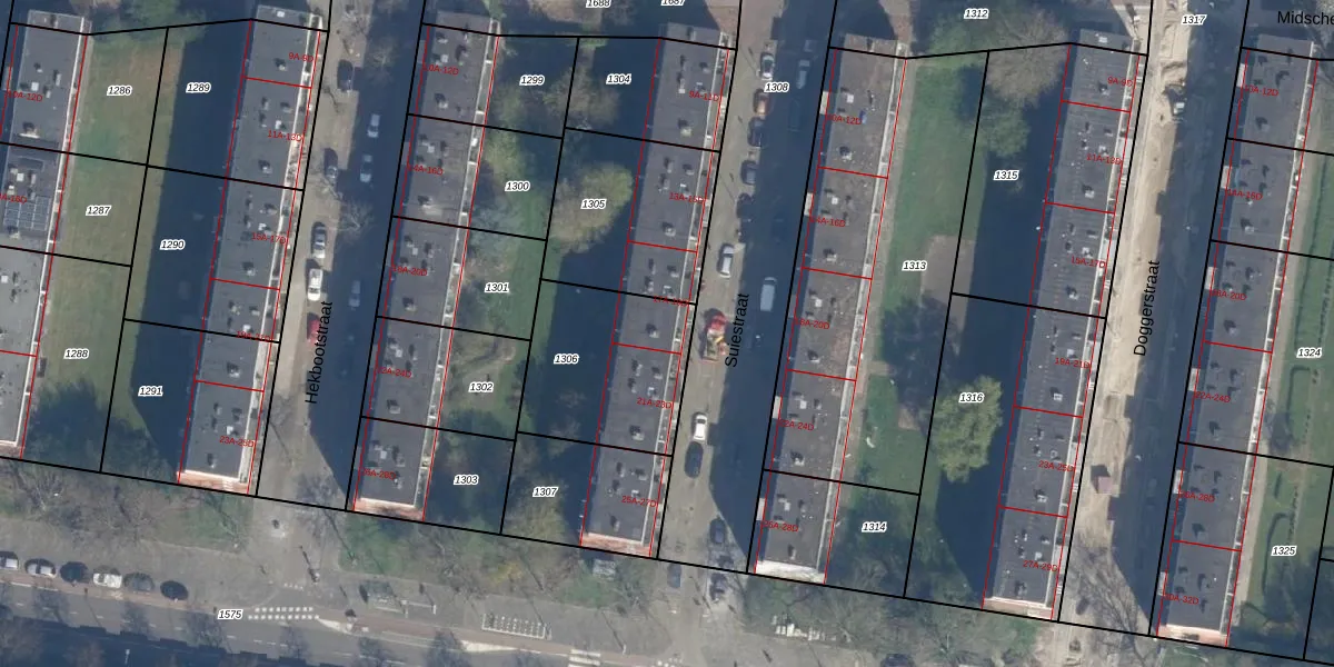 Suiestraat 19-C is gelegen op kadastraal perceel RTD10AA1306. Deze kadastrale aanduiding is uniek en wordt gebruikt door het Kadaster om eigendomsrechten en andere zakelijke rechten vast te leggen. Het perceel maakt onderdeel uit van de kadastrale gemeente Rotterdam.