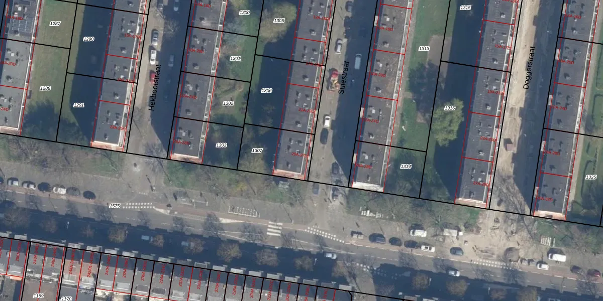 Suiestraat 25-C is gelegen op kadastraal perceel RTD10AA1307. Deze kadastrale aanduiding is uniek en wordt gebruikt door het Kadaster om eigendomsrechten en andere zakelijke rechten vast te leggen. Het perceel maakt onderdeel uit van de kadastrale gemeente Rotterdam.