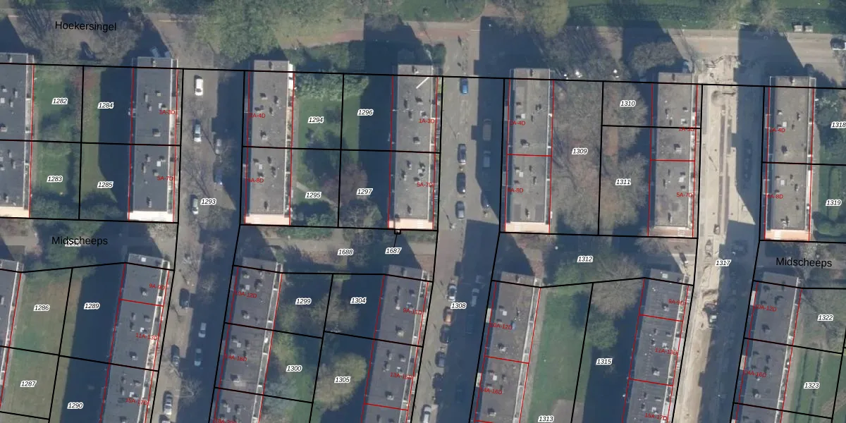 Het adres is gelegen op perceel 1297 in de sectie AA en de kadastrale gemeente Rotterdam. De kadastrale aanduiding is aldus RTD10-AA-1297. Het perceel is kleiner dan gemiddeld in Rotterdam. Het perceel is 427 m² groot, terwijl het gemiddelde ligt op 1601,97 m². Het grootste perceel in de kadastrale gemeente is 30,3 ha. Het kleinste perceel heeft een oppervlakte van 0 m². Op het perceel zijn 8 adressen aanwezig. In de Basisregistratie Kadaster (BRK) werden de grenzen van het perceel geregistreerd op 27-01-2003.