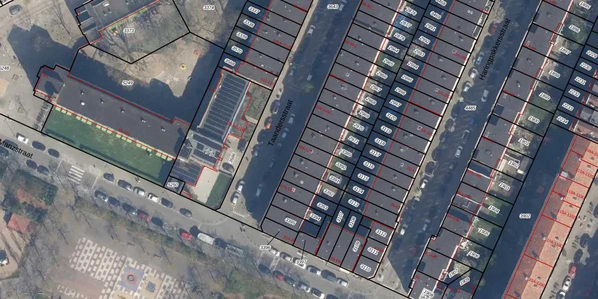 Taandersstraat 110 is gelegen op kadastraal perceel DHV00H3390. Deze kadastrale aanduiding is uniek en wordt gebruikt door het Kadaster om eigendomsrechten en andere zakelijke rechten vast te leggen. Het perceel maakt onderdeel uit van de kadastrale gemeente Delfshaven.