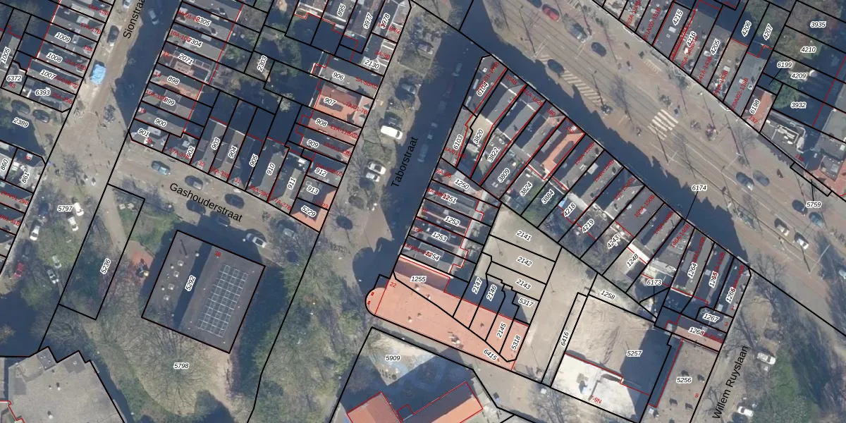Het perceel waarop Taborstraat 10 staat heeft een oppervlakte van 82 m². Dit is een klein perceel. De perceeloppervlakte wordt geregistreerd door het Kadaster. Gedetailleerde informatie over de maten van dit perceel kunt u vinden in het rapport Kadastrale kaart met maatvoering van Taborstraat 10.