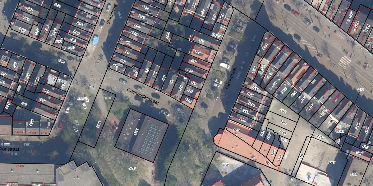 Het perceel waarop Taborstraat 21 staat heeft een oppervlakte van 47 m². Dit is een klein perceel. De perceeloppervlakte wordt geregistreerd door het Kadaster. Gedetailleerde informatie over de maten van dit perceel kunt u vinden in het rapport Kadastrale kaart met maatvoering van Taborstraat 21.
