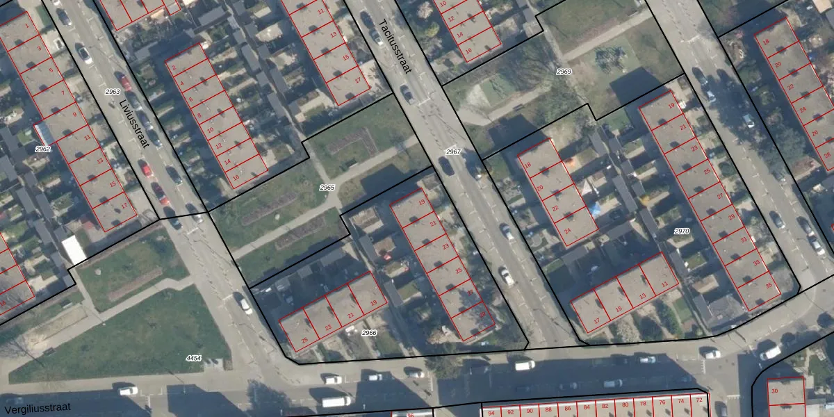 Het perceel waarop Tacitusstraat 19 staat heeft een oppervlakte van 1863 m². Dit is een zeer groot perceel. De perceeloppervlakte wordt geregistreerd door het Kadaster. Gedetailleerde informatie over de maten van dit perceel kunt u vinden in het rapport Kadastrale kaart met maatvoering van Tacitusstraat 19.