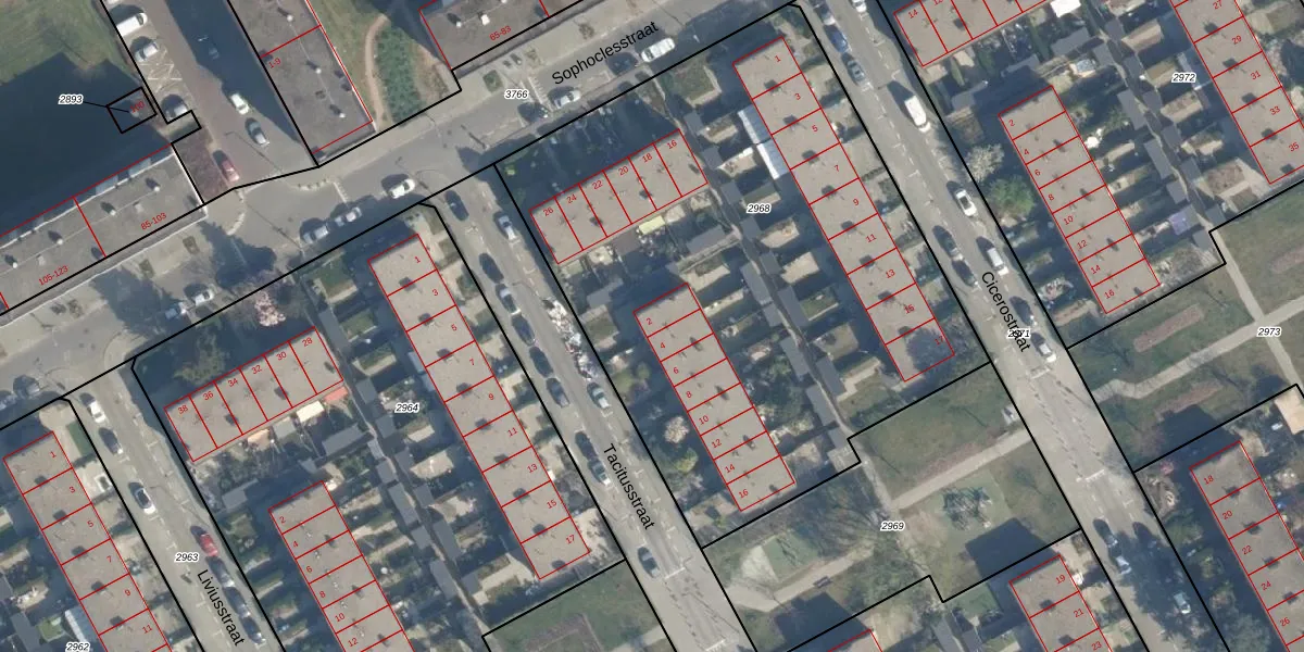 Het perceel waarop Tacitusstraat 2 staat heeft een oppervlakte van 3432 m². Dit is een zeer groot perceel. De perceeloppervlakte wordt geregistreerd door het Kadaster. Gedetailleerde informatie over de maten van dit perceel kunt u vinden in het rapport Kadastrale kaart met maatvoering van Tacitusstraat 2.