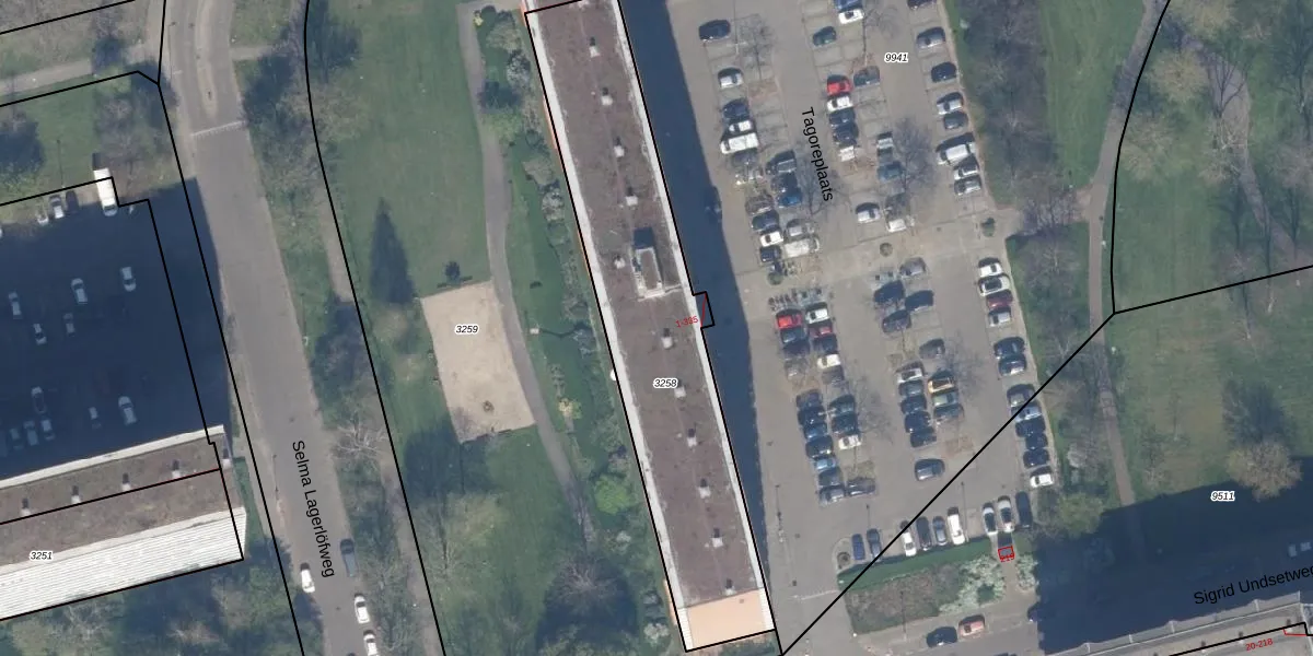 Het perceel waarop Tagoreplaats 163 staat heeft een oppervlakte van 1433 m². Dit is een zeer groot perceel. De perceeloppervlakte wordt geregistreerd door het Kadaster. Gedetailleerde informatie over de maten van dit perceel kunt u vinden in het rapport Kadastrale kaart met maatvoering van Tagoreplaats 163.