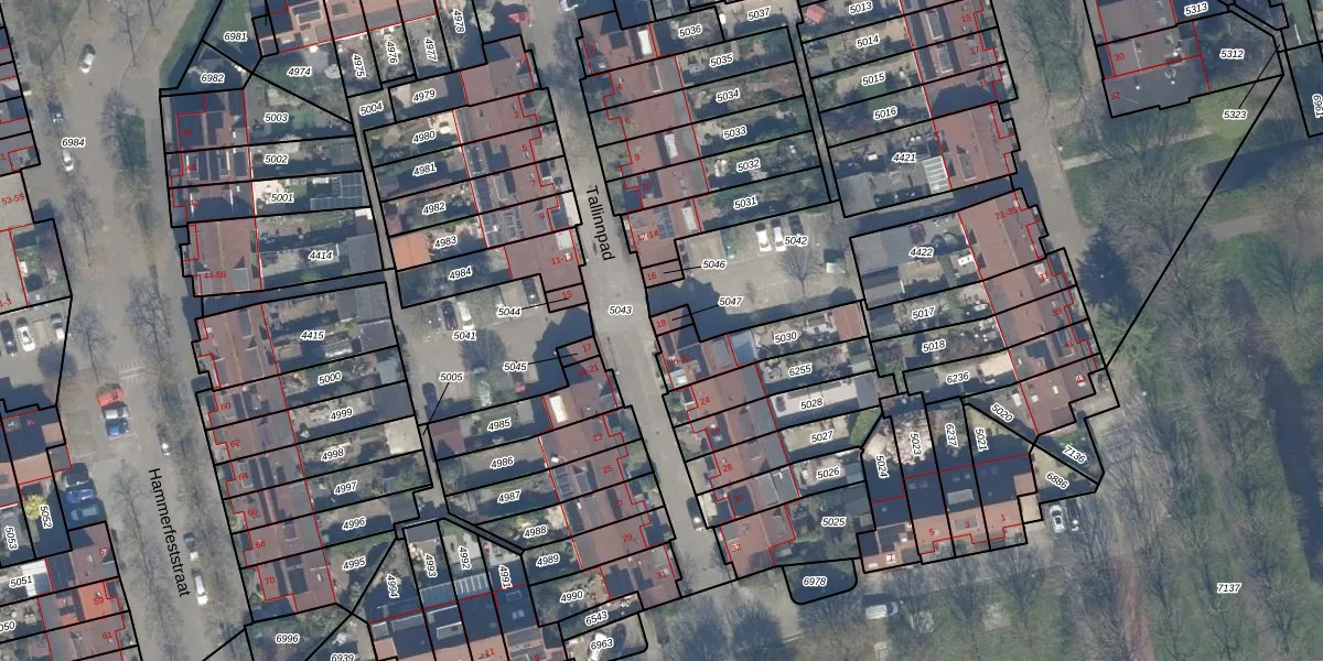 Het perceel waarop Tallinnpad 18 staat heeft een oppervlakte van 18 m². Dit is een klein perceel. De perceeloppervlakte wordt geregistreerd door het Kadaster. Gedetailleerde informatie over de maten van dit perceel kunt u vinden in het rapport Kadastrale kaart met maatvoering van Tallinnpad 18.
