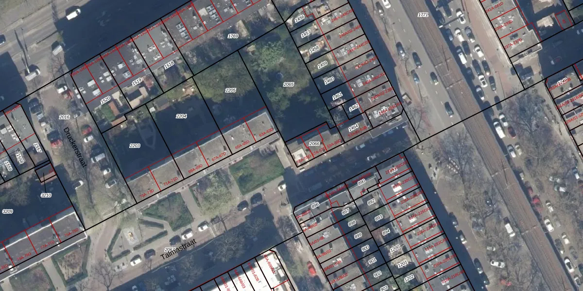 Talmastraat 55-C is gelegen op kadastraal perceel RTD10AB2066. Deze kadastrale aanduiding is uniek en wordt gebruikt door het Kadaster om eigendomsrechten en andere zakelijke rechten vast te leggen. Het perceel maakt onderdeel uit van de kadastrale gemeente Rotterdam.