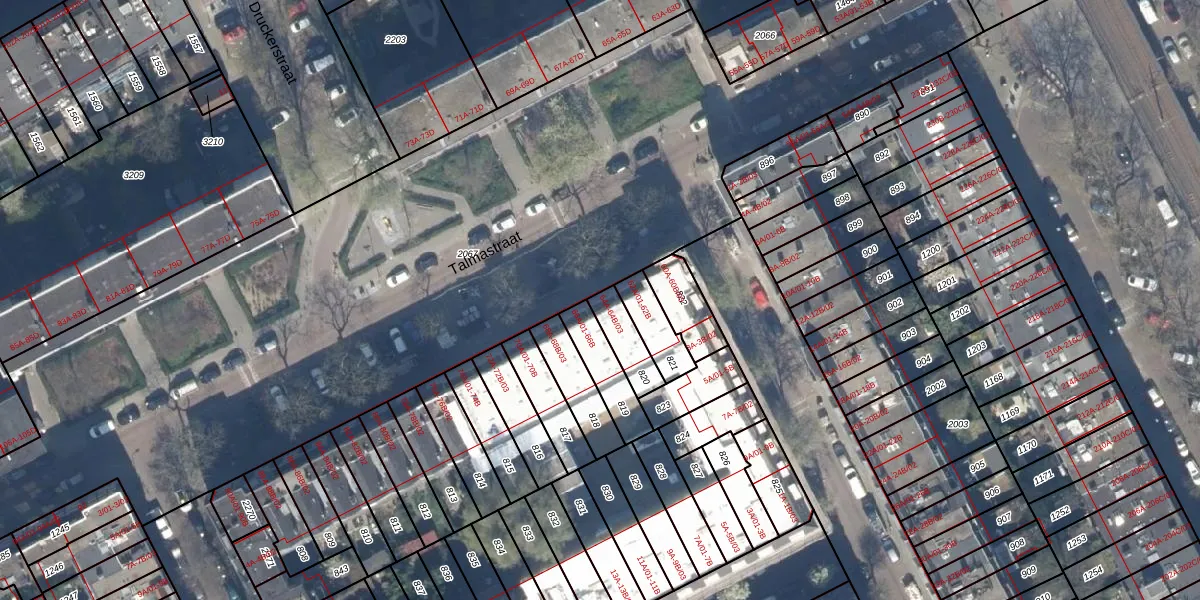 Talmastraat 64-A-01 is gelegen op kadastraal perceel RTD10AB820. Deze kadastrale aanduiding is uniek en wordt gebruikt door het Kadaster om eigendomsrechten en andere zakelijke rechten vast te leggen. Het perceel maakt onderdeel uit van de kadastrale gemeente Rotterdam.
